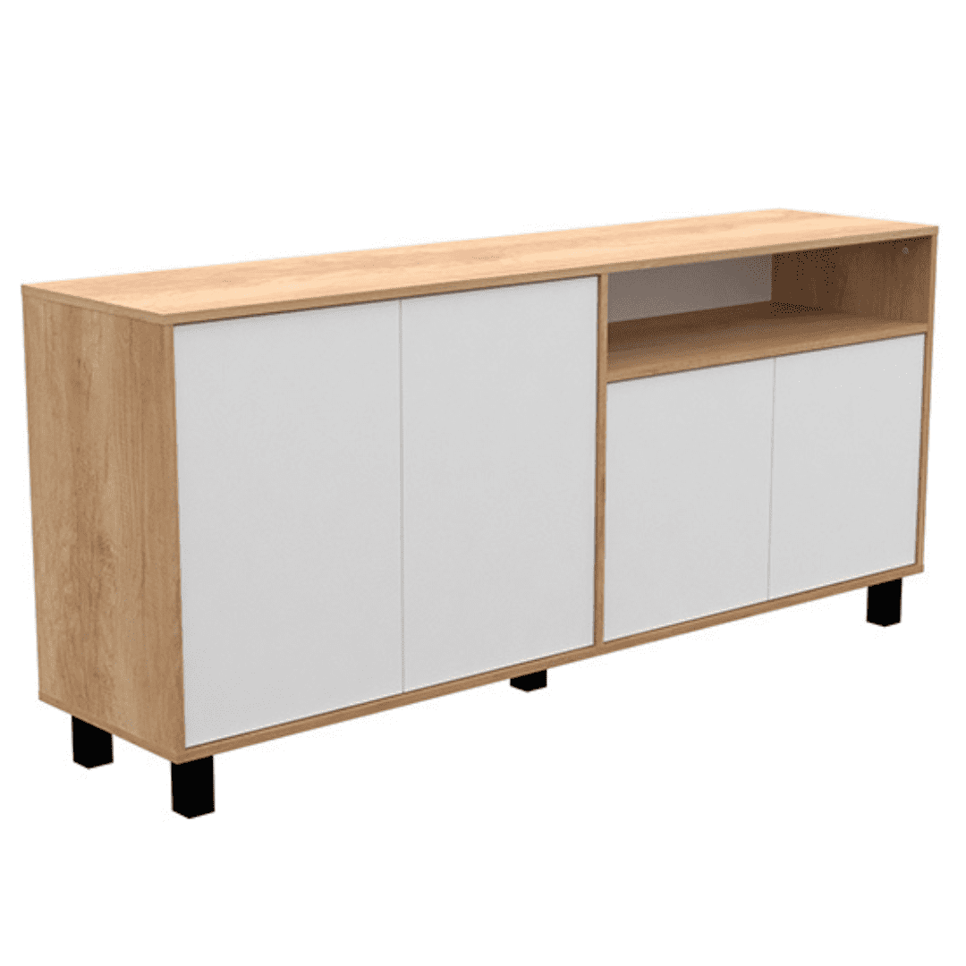 El Bahiut Milenial Doors de 1,70m es una pieza funcional y elegante para comedores o livings de gran capacidad. Fabricado en melamina sobre MDP de 15mm con fondo en MDF de 3mm, ofrece cuatro puertas batientes con sistema push open (expulsor metálico) y tres estantes fijos ideales para organizar vajilla, libros o decoración. Soporta hasta 80kg y se completa con cinco patas plásticas regulables que garantizan una base firme y nivelada.