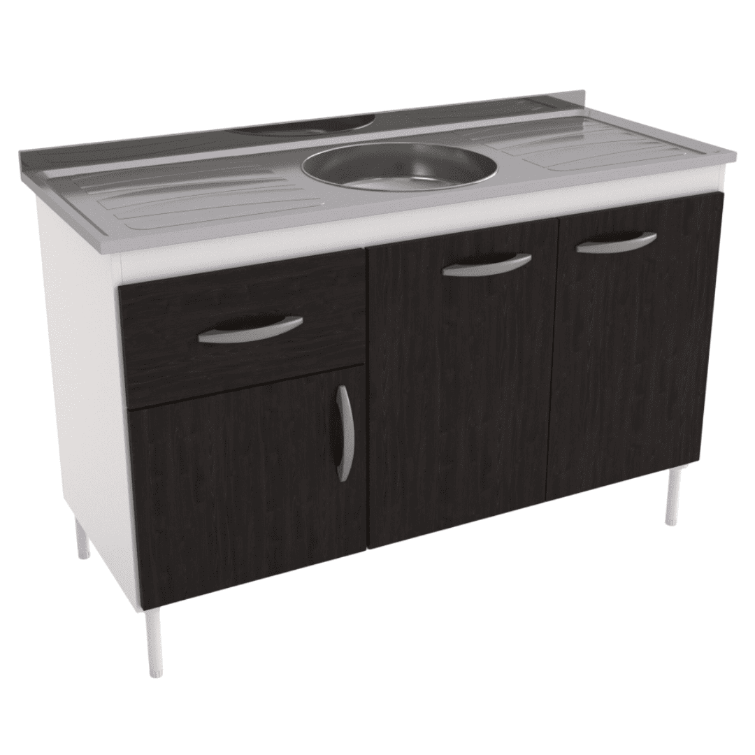 Renová tu cocina con el Bajo Mesada Alfa de 120 cm, una solución práctica y funcional para mantener todo en orden. Con 3 puertas y 1 cajón con correderas metálicas, ofrece el espacio ideal para organizar vajilla, utensilios o productos de limpieza de manera eficiente.