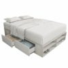 Cuenta con 4 cajones de gran capacidad y 2 puertas abatibles, perfectas para guardar calzado, ropa blanca u objetos personales. Fabricada con materiales resistentes y detalles de terminación como correderas metálicas, bisagras articuladas y perfiles de aluminio, esta base combina funcionalidad y estética para tu dormitorio.