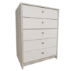 Cada detalle está pensado para combinar funcionalidad y estética: cajones totalmente revestidos con correderas metálicas, tiradores metálicos y sistema Minifix que garantiza un armado limpio y prolijo, sin tornillos a la vista.