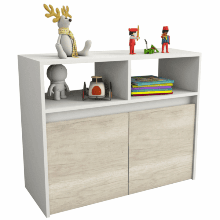 El juguetero 3037 es la solución práctica y moderna para mantener todo en orden. Cuenta con dos amplios cajones y ruedas que facilitan su movilidad, permitiendo moverlo de una habitación a otra sin esfuerzo. Está fabricado en melamina de alta resistencia, lo que lo hace duradero y fácil de limpiar. Su altura es ideal para que los más chicos accedan cómodamente a sus juguetes. Perfecto para sumar funcionalidad y estilo al dormitorio infantil.