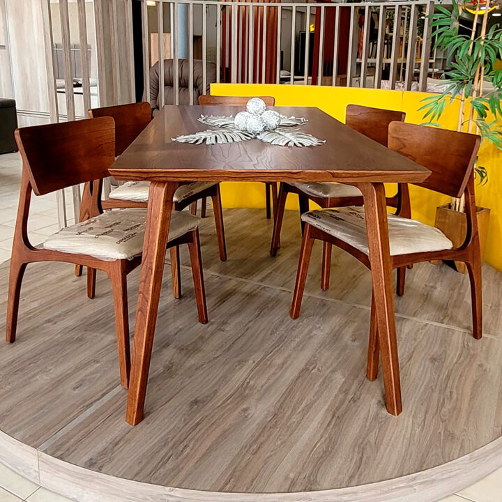La Mesa de Comedor MC238 Mbareté, que en guaraní significa fuerte, honra su nombre con una estructura sólida y duradera, fabricada en madera maciza de paraíso proveniente de bosques sustentables. Su diseño contemporáneo se destaca por el dinamismo de sus patas curvas, que evocan las suaves ondulaciones del paisaje misionero, fusionando tradición y vanguardia en una pieza única.