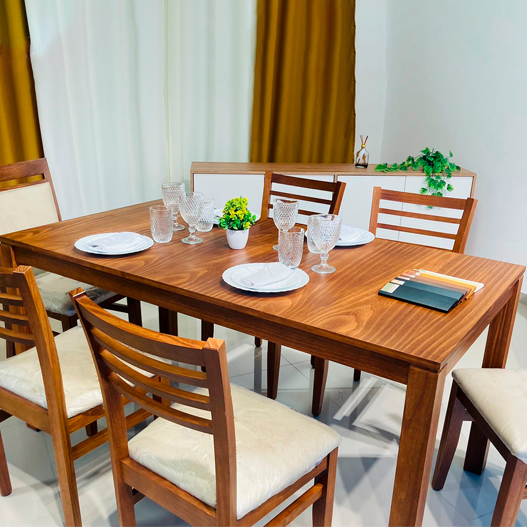 La mesa MC119 en madera maciza de pino de 1.60 m es sinónimo de resistencia, funcionalidad y diseño tradicional. Con espacio cómodo para seis comensales, es ideal para quienes buscan una mesa sólida que se adapte a distintos estilos de comedor.