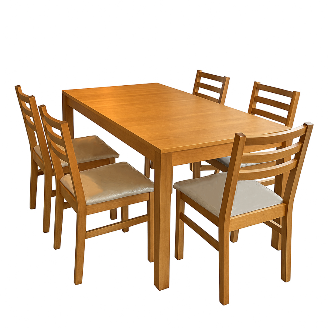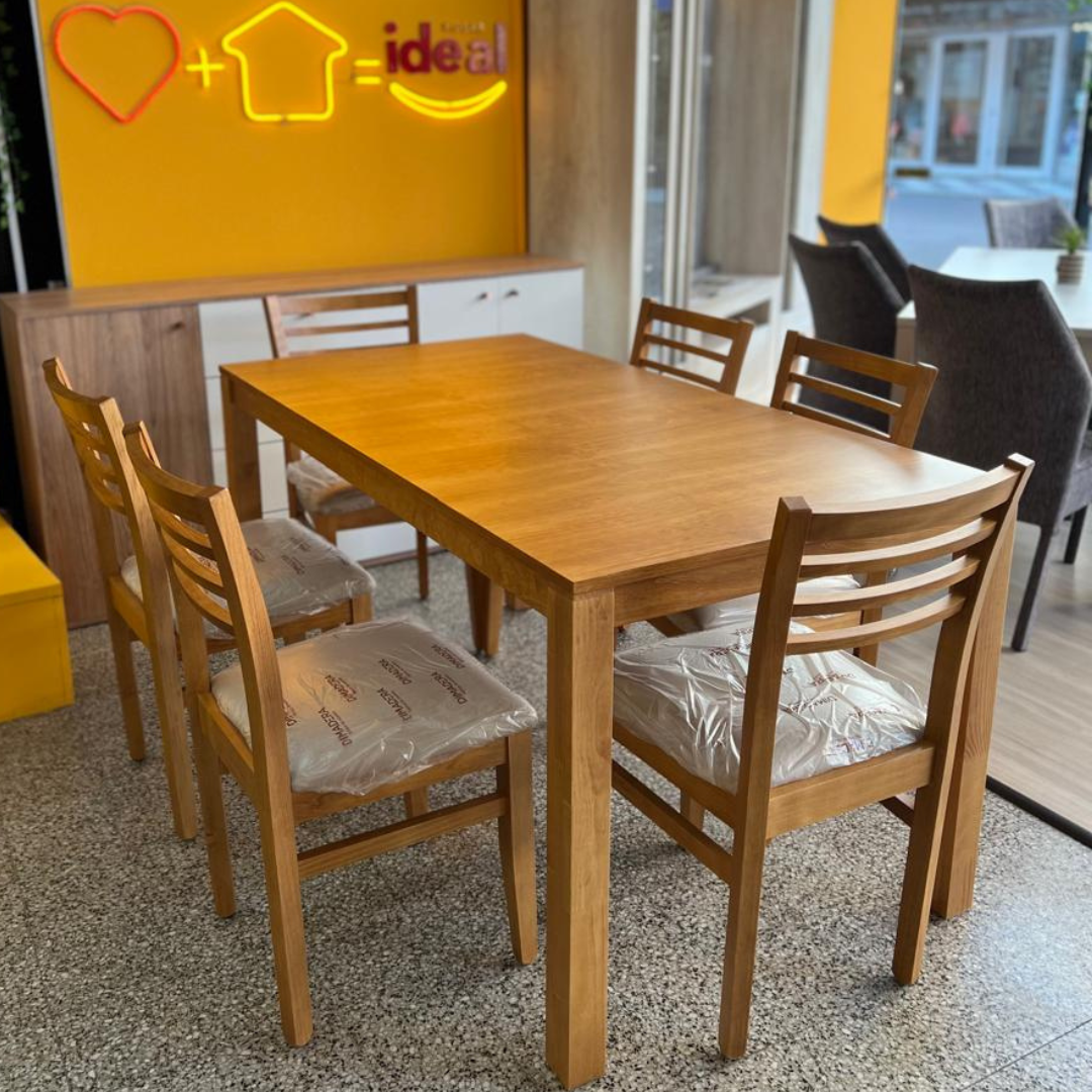 La mesa MC119 en madera maciza de pino combina robustez y calidez en una propuesta clásica que se adapta a todo tipo de comedores. Sus proporciones compactas la convierten en una excelente opción para espacios más reducidos sin resignar presencia ni funcionalidad.