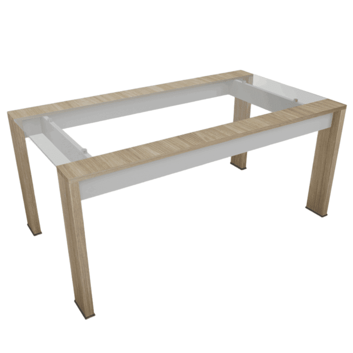 Su estructura firme incluye patas revestidas en melamina y bases de PVC que actúan como aislantes contra la humedad, asegurando mayor durabilidad en el uso diario. Robusta y versátil, la mesa Awen es perfecta para quienes buscan estilo y practicidad en un solo mueble.