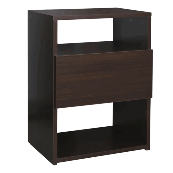 Mesa de Luz con cajón y zapatero abierto.