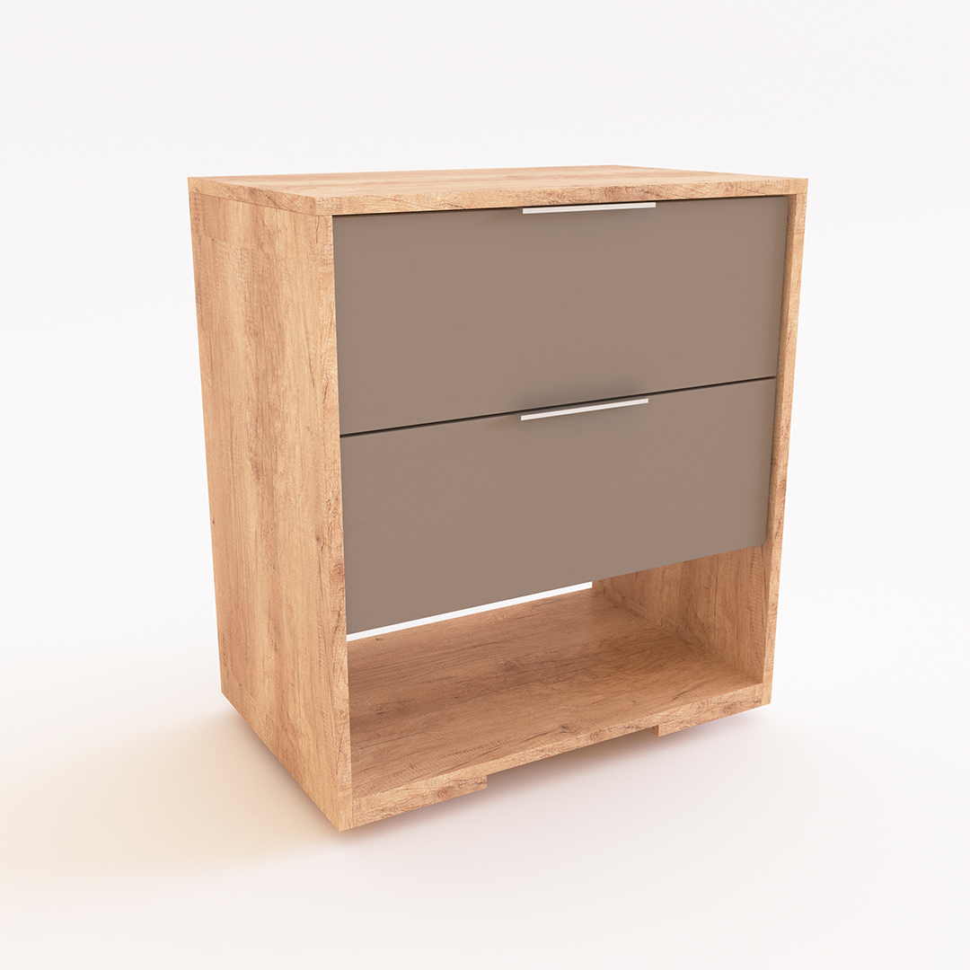 La Mesa de Luz Duo de 0,55 m ofrece una solución funcional y elegante para completar tu espacio de descanso. Equipada con 2 cajones de suave deslizamiento gracias a sus correderas metálicas y un práctico nicho inferior, permite tener a mano todo lo necesario para tu rutina diaria. Su interior totalmente revestido y su acabado mate realzan la estética del dormitorio.