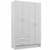 El Placard 23 Pack es una solución accesible y bien organizada para dormitorios pequeños o secundarios. Fabricado en MDP de 15mm con acabado mate UV y fondo en MDF de 3mm, cuenta con tres puertas batientes, dos cajones con correderas plásticas y un interior funcional que incluye barral plástico para colgar ropa, dos estantes fijos y uno regulable.
