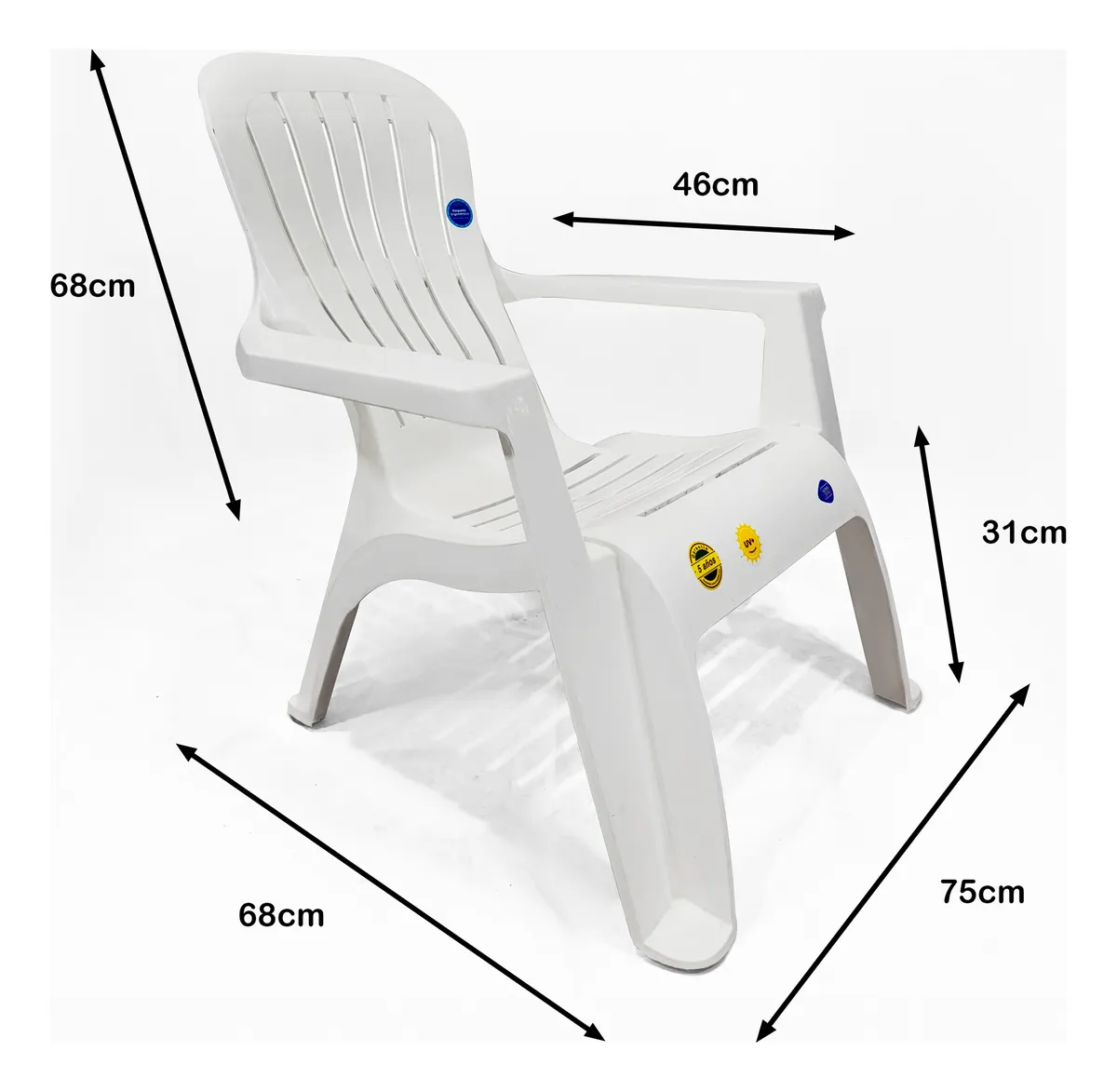 El Sillón Plástico Varadero Reforzado es la combinación ideal de comodidad y resistencia para disfrutar al aire libre. Su diseño ergonómico con apoyabrazos brinda una postura confortable, mientras que la estructura de plástico reforzado garantiza estabilidad y durabilidad en todo momento. Gracias a su formato apilable, se puede guardar y trasladar fácilmente, optimizando el espacio cuando no está en uso.